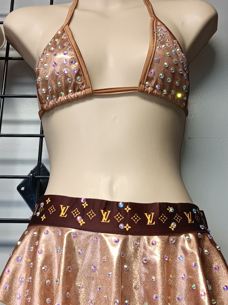 3 piece custom designed 1 of 1 skirt set with rhinestones